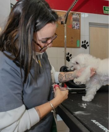 Incluye baño si es necesario, secado, corte (a tijera o máquina según el caso), arreglo de cara/patitas, limpieza de oídos y recorte higiénico