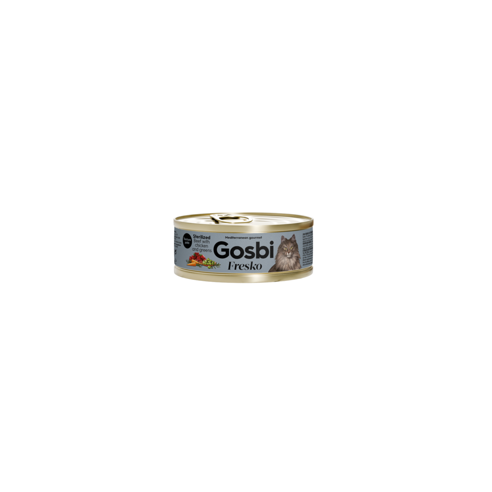 Fresko Cat Sterilized Ternera con Pollo y Verduras está pensado para las necesidades de los gatos esterilizados: una receta sabrosa, con ingredientes naturales y sin cereales que ayuda a controlar la ingesta calórica sin renunciar al sabor. La combinación de ternera (35%) y pollo (20%) aporta proteínas de alta calidad, mientras que las verduras y las algas marinas contribuyen con fibra y micronutrientes.