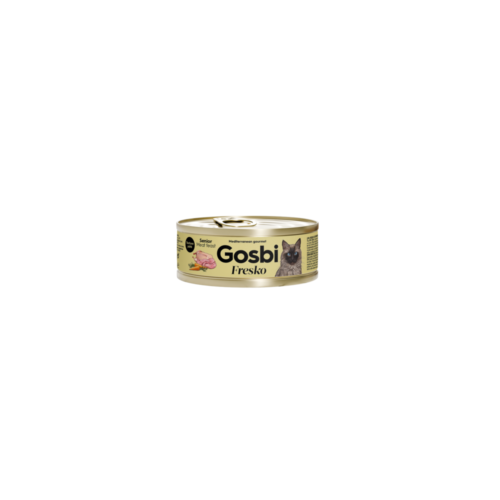 Gosbi Fresko Cat Senior Meat Feast es un alimento complementario pensado para gatos mayores y/o esterilizados. Su mezcla de carnes seleccionadas ofrece una alta aceptación y ayuda a mantener el interés por la comida en gatos exigentes. Elaborado sin cereales, con una textura jugosa y un perfil nutricional adecuado para combinar con su alimento completo habitual.