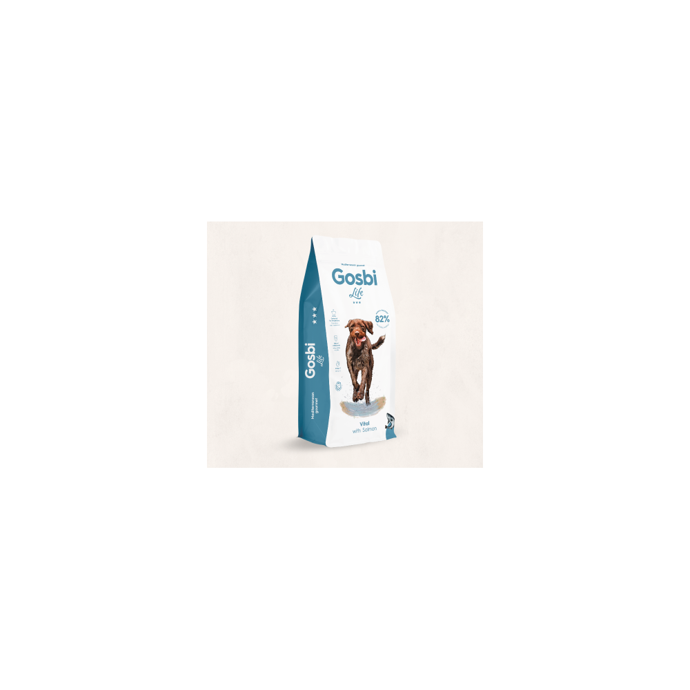 Gosbi Life Vital with Salmon es un pienso completo para perros adultos de todas las razas. Con harina de pollo como base y salmón para reforzar el aporte de omega-3, ofrece una receta sabrosa y equilibrada para el día a día. La croqueta de 14 mm facilita la masticación y la digestión. Disponible en 3 kg y 12 kg.